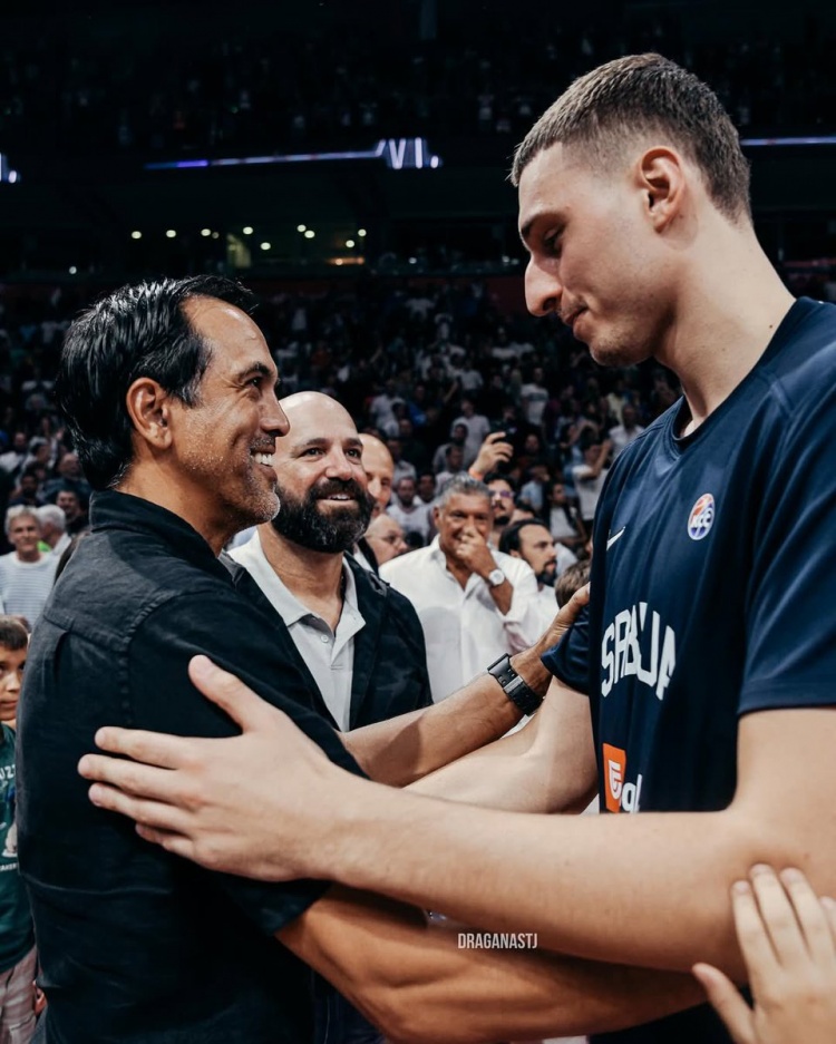 热火教练斯波来到现场观看了本场比赛,目前效力于塞尔维亚的热火球员尼古拉-约维奇10投7中拿下全场最高的18分,外加7篮板。